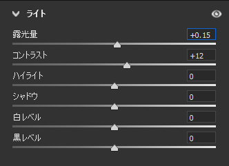 - “ライト”というウィンドウ内に“コントラスト”というメーターがあるので、こちらでコントラストを簡単に調整できます。