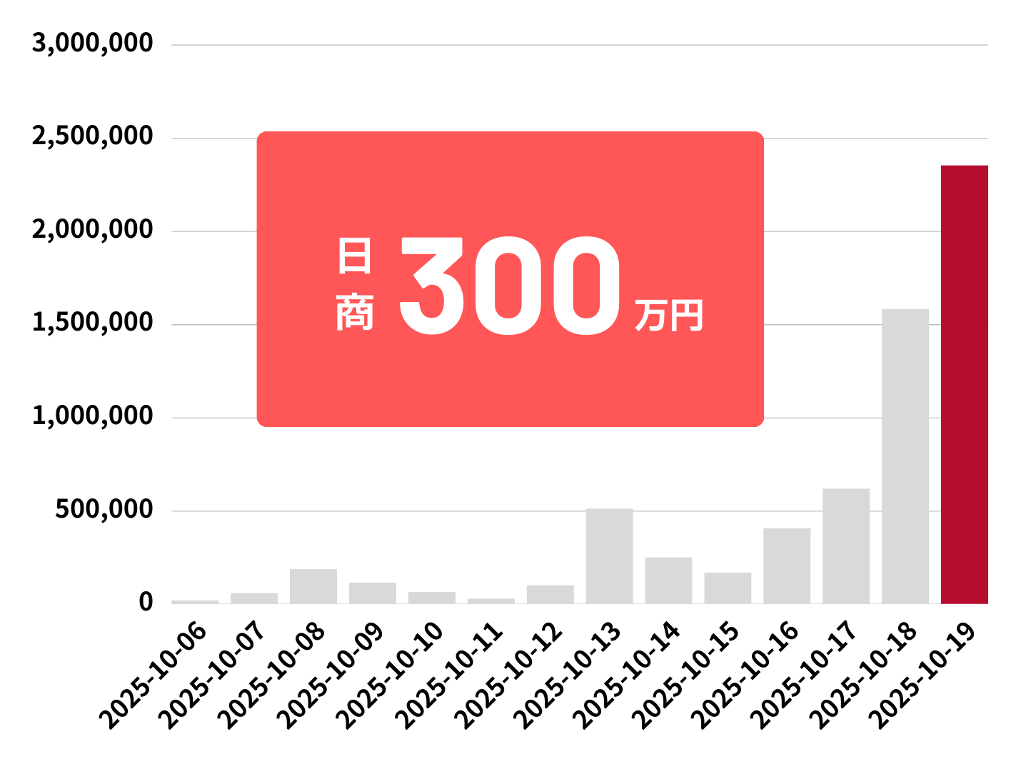 2017年11月着任後、楽天市場、Amazonに加えて、aupayマーケット、dショッピング、Qoo10など多くのモールへ出店し急拡大。商品の開発なども積極的に取り組み、商品数も拡充させ、各モールの年間受賞を総なめにした2023年には約49億円に。約6年で約10倍の売上高まで飛躍的に成長させてきた。
